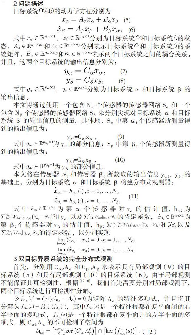 基于工业互联网的双目标系统的完全分布式观测