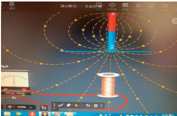 在物理实验教学中,仿真实验对理想实验和经典实验进行理想化处理,为物理实验教学,带来了很多便利,对已有理论的补充和完善都起到积极的推动作用。高中的物理学习,重要方法是对物理过程建模,仿真实验帮助学生建立“理想模型”创建学习环境,体验研究过程,形成物理概念,理解物理定理和定律内涵与外延。仿真实验能够突破客观因素所带来的限制,支持任意实验情景下搭建和建构物理模型,进而改变了物理实验教学的现状,展现了教材中理想实验变化过程,化静为动, 变抽象为具体,使看不见,摸不到的实验现象,可视化,数据化。如:探究“法拉第电磁感应定律”的实验中,动态的条形磁铁磁感线的变化,在闭合回路中磁通量发生变化,发生相对运动,产生感应电流,电流表任意时刻的瞬间变化,让学生感受产生的感应电流,电路中产生了感应电动势。