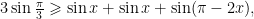 。 因 为sinx+sinx+sin(π-2x)=2sinx+sin2x= f (x),所以有 。 故 f(x) 的最