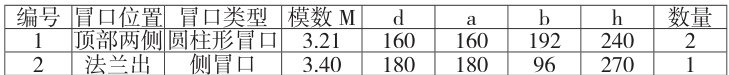 2. 侧冒口根据模数计算结果由铸造手册查表得尺寸如表 1-1所示: