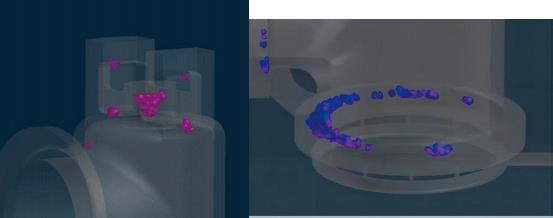 对于底部的优化除了增设外冷铁之外,还需要在法兰处上方增设暗冒口,在 法兰处增设内冷铁。其模拟结果中显示(如图 1.5),底部与法兰处缺陷明显减少且底部缺陷集中于外冷铁处。