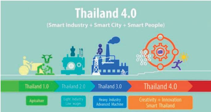 在上一届政府中,泰国政府努力推动泰国迈向“Thailand 4.0”时代。如图1。