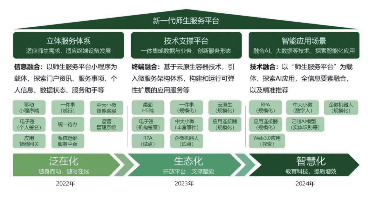 信息融合:以师生服务平台小程序为 终端融合:基于云原生容器技术,引 技术融合:以“师生服务平台”为载