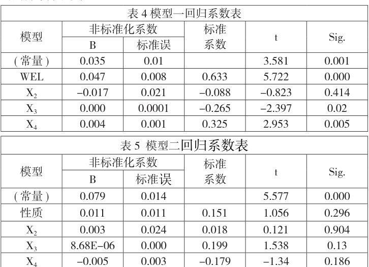 模型1: ROA=α0+α1*Wel+α2*X2+α3*X3+α4*X4+ε1 模型2: ROA=βΩ0+βΩ1*Gov+βΩ2*X2+βΩ3*X3+βΩ4*X4+εΩ2