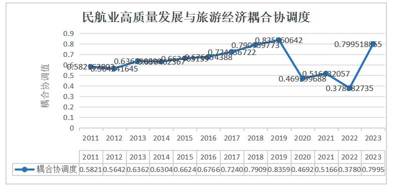 4.2 民航业高质量发展与旅游经济耦合结果分析