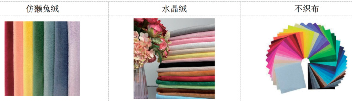 关于材质的选择方面,市场上苗族箱包大多选取了苗族传统的布艺材料、木质材料以及草编材料等等,有的还会和现代工艺相互融合,以此来重现苗族手工技艺所具有的质地风格,就像蜡染那样。而此次本产品在设计之时所运用的材质属于现代材料聚酯纤维,即涤纶,是化学缩聚制成的合成纤维。聚酯纤维是 20 世纪 30 年代发明的,具有抗皱保形、高强度、弹性好、耐磨不粘毛等优点。聚酯纤维的化学性质稳定,不会释放出有害物质。其在日常穿着过程中,与皮肤接触也不会引发不良反应。其质地相当柔软,不仅品质优良,价格也较为实惠,而且是市场玩偶常用的材料之一,适用于儿童这类人群。本产品还会采用水晶绒与不织布作为辅助材料一起制作。