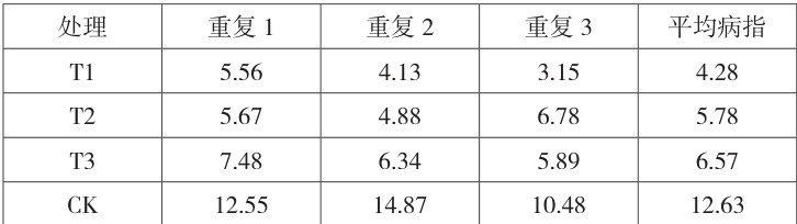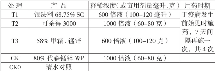银法利(T1)、可杀得 3000(T2)、甲霜·锰锌(T3)的防治效果显著优于对照(CK)。