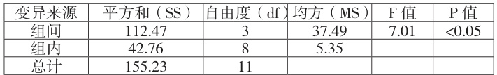 方差分析表明处理间存在显著差异( F=7.01 , P<0.05 )。多重比较