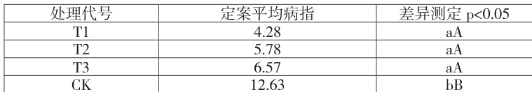 三种药剂之间防治效果无显著差异,但银法利定案病指最低,防治效果最优。