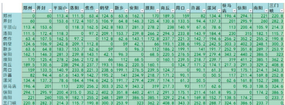 接下来,我们需要在这 9 个城市中选择一条从周口出发的最佳配送路线,由结果可知该车辆的配送路线应为:周口—开封—鹤壁—濮阳—安阳—焦作—郑州—平顶山—许昌—周口