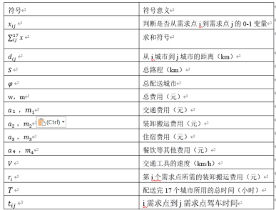 下面将对问题(1)和问题(2)进行规划求解首先对于规划求解中的符号进行说明如表2 -3 所示: