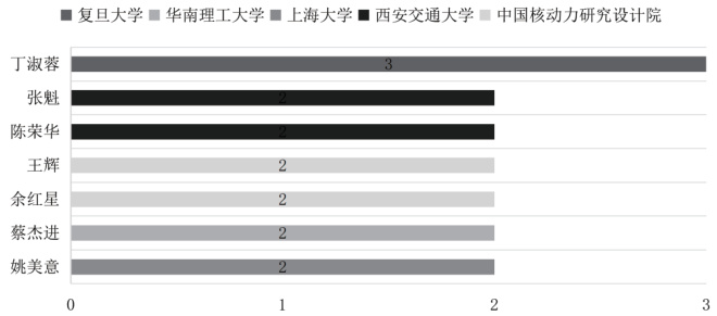 西安交通大学能源与动力工程学院张魁副教授负责 1 项面上项目与 1 项青年科学基金项目。张魁副教授的研究方向为压水堆部件、设备、系统热工水力实验,一体化小堆自然循环系统热工安全特性,海洋核动力系统热工安全特性分析技术,铅铋堆非能动余热排出系统安全分析技术,高温超碳失压喷放进程与冲击力学机理,聚变堆包层多维时空多场耦合分析技术。以张魁作为发明人之一的专利数量共计44 件,布局时间自 2015 年起持续至今,其中以他作为第一发明人的专利有 22 件,远超团队中其他第一发明人的专利量,可见张魁应当是其所在研究团队的核心成员,其整个研究团队布局的专利技术主要围绕核反应堆系统展开。