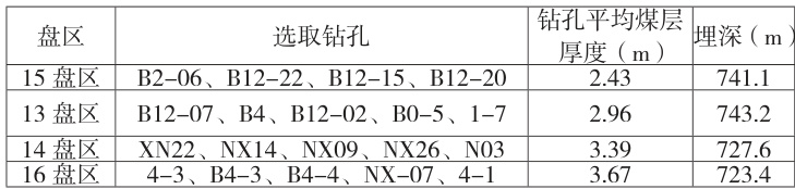 为了研究该矿区煤层厚度对回采后地面沉降的影响,二 1 煤层取该矿区代表性平均厚度 2.43m 、 2.96m 、 3.39m 、 3.67m 进行开采模拟。每个盘区的数值模拟中所使用的岩层厚度均采用钻孔数据平均值如表1 所示。