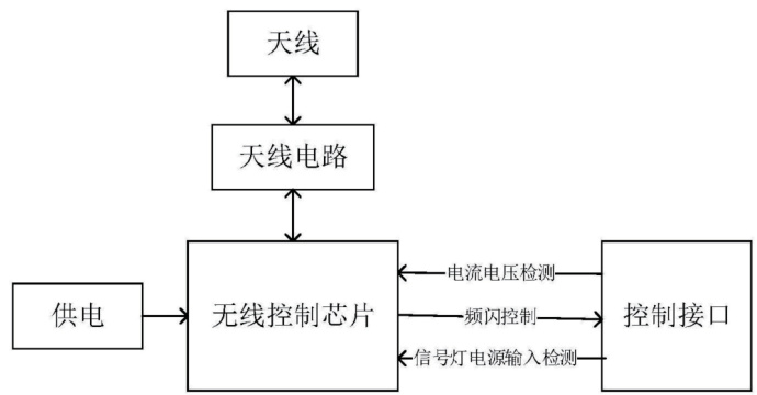 信号灯检测模块安装于信号灯电源与灯盘之间,内置微控制器(MCU),实时采集灯盘工作电流和电压数据,具备本地异常状态初步判定功能(如过流、欠压检测),并通过无线通信与主机交互;该模块同时支持接收主机指令控制灯盘频闪,便于现场故障定位。