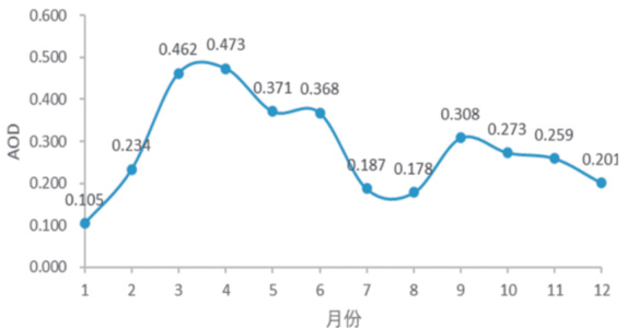3.2 AOD 月均值时空变化分析
