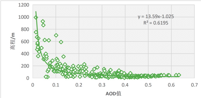 图3 AOD 与高程拟合分析