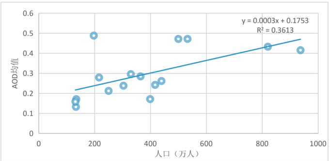Fig. 6 Analysis of fitting between population and AOD in Anhui Province