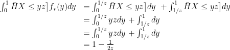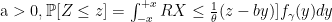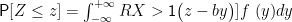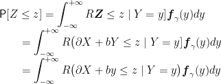 $\begin{array} { l } { { \displaystyle \ = \int _ { - \infty } ^ { + \infty } ( 1 - R X \le \frac 1 \mathsf { a } ( Z - b y ) ] ) f _ { \star } ( y ) d y } } \\ { { \displaystyle \ = \ 1 - \int _ { - \infty } ^ { + \infty } R \ X \le \frac 1 \mathsf { a } ( Z - b y ) ] f _ { \star } ( y ) d y } } \end{array}$ 类似原理和方法,得到