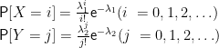 证明: 由随机变量 X 和 Y 分别服从参数为 λ1,λ2>0 的泊松分布,则有: