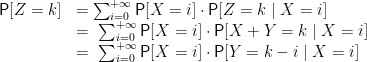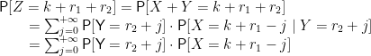 P[Z=k]=Σi=0kP[X=i]⋅P[Y=k-i],