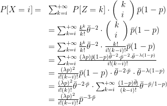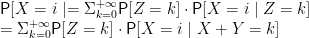 P[X=i]=Σk=i+∞P[Z=k]⋅P[X=i∣X+Y=k]