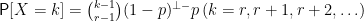 给定观察事件 A,每次试验事件 A 发生的概率为 p ,重复独立试验中,观察事件 ΔA 第 r 次发生的次数,以随机变量 ΔX 表示事件 A 第 r 次发生时所做试验的次数,称随机变量 ΔX 为服从参数(p,r)(0 ,其分布律为: