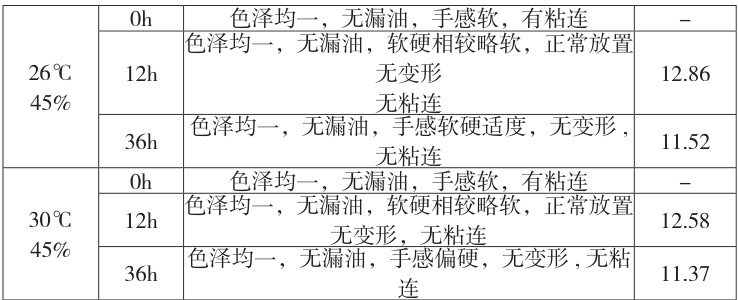 不同温湿度条件下,定型的考察结果见表4。
