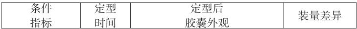 刚压丸制备的软胶囊由于囊皮水分较高,导致囊皮比较柔软,易受外力和温度的影响而发生变形,所以需要定型。在压丸和定型工艺过程中环境条件(温度和湿度)对产品有一定的影响,所以对环境条件进行考察。湿度过高不利于软胶囊的定型,过低的湿度则增加设备能耗,因此选择 RH45±5% 、 RH35±5% 、 RH25±5% 进行考察,温度选择常规 18∘C~30°C 进行考察,以未定型胶囊外观,定型后胶囊外观,定型时间和装量差异为考察指标,评价环境条件对压丸和定型工艺过程的影响。