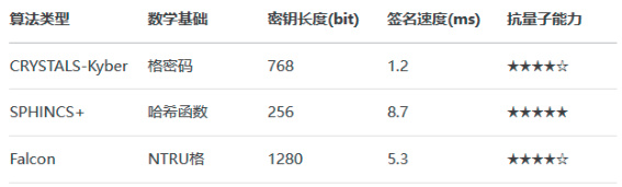 后量子密码 (PQC):NIST 主导的 PQC 标准化进程(2022-2024)已选出首批 4 种算法,基于不同数学难题构建抗量子安全基元:在区块链领域,抗量子门限签名技术使交易验证速度提升 40% ,有效防御“先窃取后解密”(HNDL) 攻击。