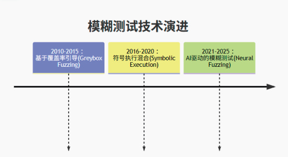 智能 Fuzzing: AFL++ 结合符号执行,发现 OpenSSL 漏洞效率提升 220%3 。模糊测试 (Fuzzing) 技术演进路径: