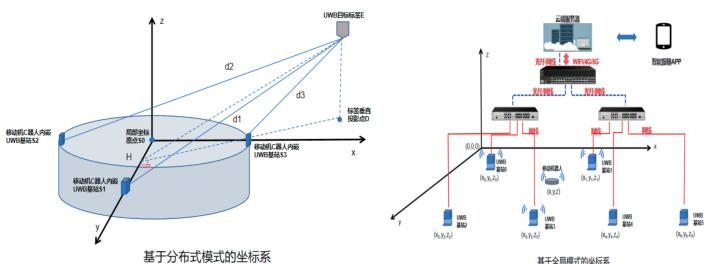 目前,现有的基于 UWB 的跟随技术主要在载物车、婴儿车、机器人、行李箱等产品中增加一套基于 UWB 技术的自动跟随系统来实现目标跟踪功能,系统主要结构包括核心控制模块、驱动模块、UWB定位模块等组成,UWB 定位模块将跟随装置与标签之间测得距离值传递给核心控制模块,控制模块通过定位算法得到 UWB 标签坐标,并计算出基站与标签之间的偏转角,从而控制电机的转角和转速。然而,现有 UWB 的跟随系统存在两个方面的问题:(1)现有的跟随装置如王凤、冯维 [1] 公开的一种基于 UWB 标签的共享智能跟随装置,在搬运结束后停留在原地,若发生移动后则与数据库服务器断开通信,无法对设备进行维护和管理。(2)当前UWB 跟随系统的定位模式单一。要么采用分布式定位模式要么全局定位模式。然而,两种定位模式各有优劣:分布式定位模式无需预设固定参考点,适用于实时追踪场景,但在商场、机场等大规模场景中,基站充电、管理和维护困难;全局定位系统精度高、稳定性好,能提供精准定位与导航服务,但运行时计算量和通信量大,大规模应用场景下总体能耗高,对系统成本和技术难度要求更严格。