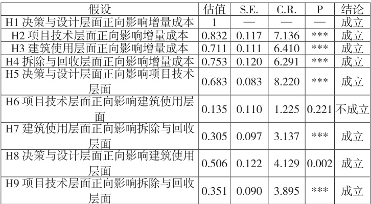 H4:拆除与回收层面正向影响绿色建筑增量成本。