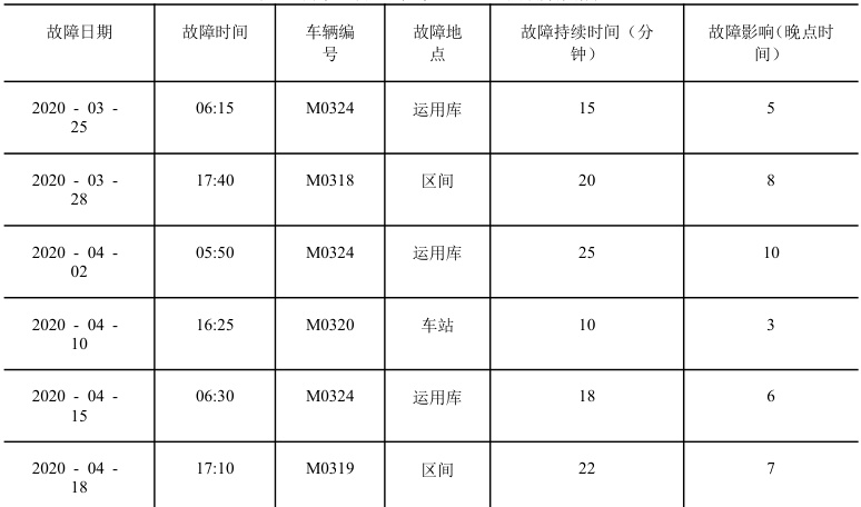 从表中数据可知,故障发生时间多集中于早晨 5 - 7 点,下午 4 - 6 点,M0324 车发生故障频次较高,运用库是相对集中的地点。例如,针对运用库故障频发的情况,可通过技术微报提醒司机在出库前加强对列车车载控制单元的检查,重点关注 M0324 车的相关设备状态。同时,优化早晨和傍晚时段的行车组织方案,合理安排列车出库和入库时间,避免因故障导致的大面积晚点。