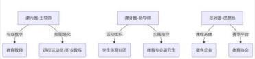 打通课内与课外教学壁垒,形成“教学-实践-文化浸润 ”全链条育人场景。通过 学分互通机制,将一系列体育活动折算为学生的体育学分。例如,俱乐部参与活动、体育赛事服 务、体育健康讲座等。跨部门联动机制,充分利用学校资源,加强各部门联动,与学工部、 团委、社团联合共建“学生体育育人联盟 ”,统筹赛事组织、健康宣传等。