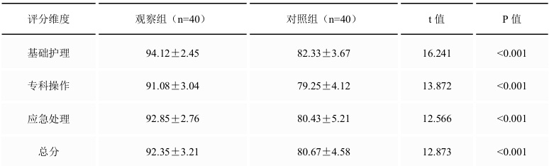 观察组( 92.35±3.21⋅ )优于对照组(80.67±4.58),P<0.001。