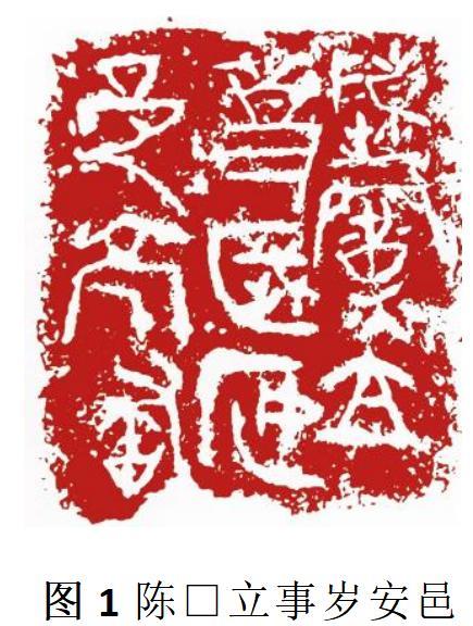 在篆刻作品当中,不同的印章所呈现的样貌不尽相同,一是源于其入印文字本身的差异性以及各文字之间的不同的排列组合方式,其次不同的线质也可以充分的体现不同的审美取向,从而影响一枚篆刻作品的气质,如同书法当中“山林气”与“庙堂气”,“残破”与之对应的“山林气”不仅为篆刻作品增添了“金石味”同时又形成了带有“模糊感”的独特艺术效果,见(图1)陈□立事岁安邑亭釜,正是“残破”的出现,充分的体现了苍茫古拙,雄浑的高古的这一特质。