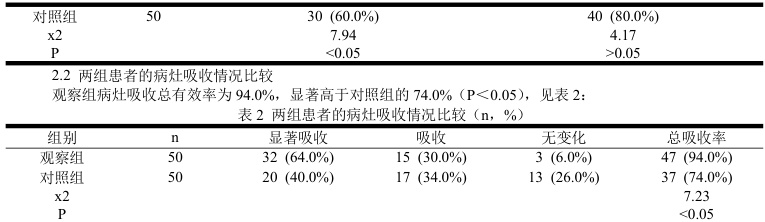 表1 两组患者的痰菌转阴率比较(n, %)