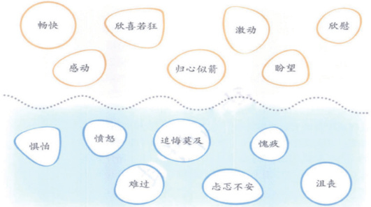 1. 捕捉情感:说说自己在生活中还有哪些情感体验,试着像图中(图一)这样用一个词表达。