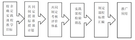 现代学徒制中,实践教学是重要环节。第一步,职业院校需要和企业研究实践课程的基本内容,按照校企课程内容互补互融的原则,达成一致的教学目标,并确定好实习内容和评价标准;第二步,根据双方共同的教学目标,制定企业授课标准和授课计划;第三步,双方共同制定考核评价体系,学校重点结合从企业生产归纳出来的生产知识点和技能要点,上升为书面性材料再进行理论考核;第四步,将企业实践中运行效果良好的课程进行汇总,总结经验,将运行效果不完善的企业课程进行修订,经双方再次讨论、研究后,制定新的课程方案直至达到标准要求;第五步,将所有课程经过筛选、实践后,结合岗位要求、企业生产、学校授课标准、学徒技能标准等,制定出校企《现代学徒制课程标准汇编》。根据校企实践课程开发的方法步骤,总结出流程见图1。