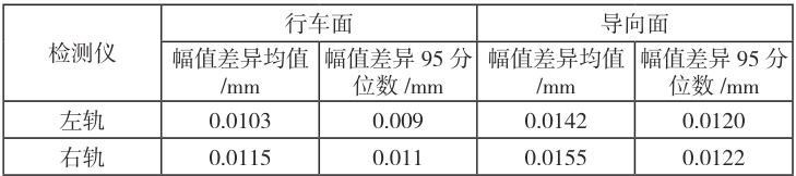 路不同方向采集的左、右轨波形的幅值差异,结果如表1 所示。