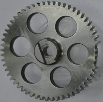 对燃滑油泵进行分解检查,发现片齿轮沿齿根部位掉落 4 个齿,见图 1。泵腔存在正常磨损痕迹,其余各零件无异常。