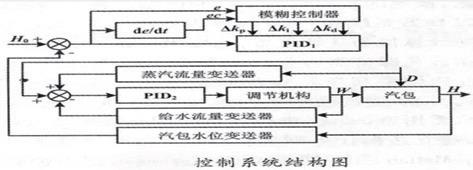 反馈作用:给水流量的信号作为反馈信号引入系统,实时监测给水的实际流量,并与设定值进行比较,调整给水阀门的开度,确保给水流量的稳定。其控制系统结构图如图 5 所示: