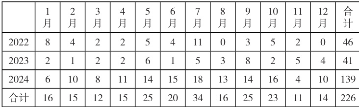 (2)2024 年起信息技术科对《行安设备运行情况日报表》中的填记内容进行了完善,要求凡是设备自检、自动恢复的所有故障均需进行记录,所以故障件数较前 2年有了显著增长。