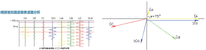 4、故障相电压超前故障相电流约 80 度左右;零序电流超前零序电压约110 度左右。