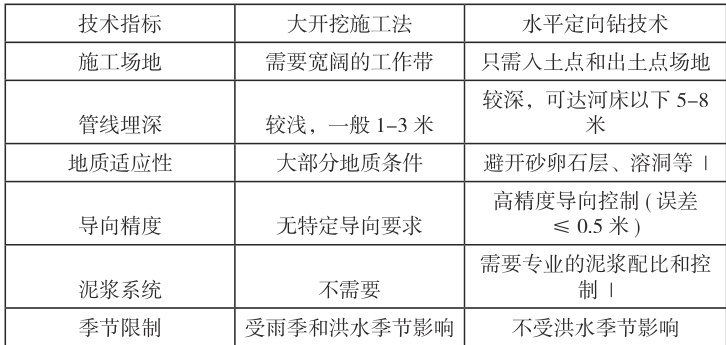 第三,地质条件是选择施工技术的关键因素。大开挖施工对地质适应性较强,而定向钻技术需要避开砂卵石层、溶洞发育区和极高度岩层等不利地质条件。