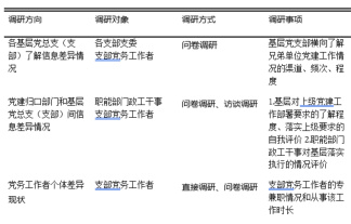 此外,作者还通过参与基层党务工作者任务、列席基层党支部“三会一课”、参加年度党建工作考核、协助职能部门其他同事开展党务工作等“参与式体验”的调研方式,观察辅助了解验证以上调查结果。