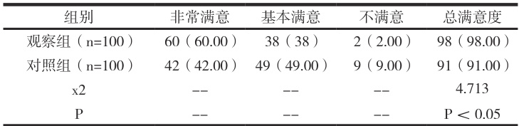 使用SPSS28.0 软件处理数据,护理满意度用 (n,%) 表达,组间以 ΔX2 对比,以 P<0.05 为差别有显著性。
