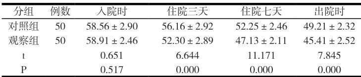 观察组患者的SDS 评分更低,(P<0.05)。见表2 :