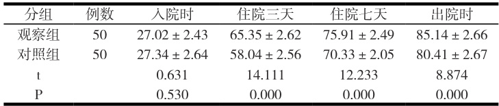 观察组患者的SAS 评分评分更低,(P<0.05)。