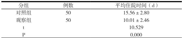 观察组的住院时间比对照组短,差异有统计学意义 Φ⋅Φ⋅<0.05 )。见表4 :